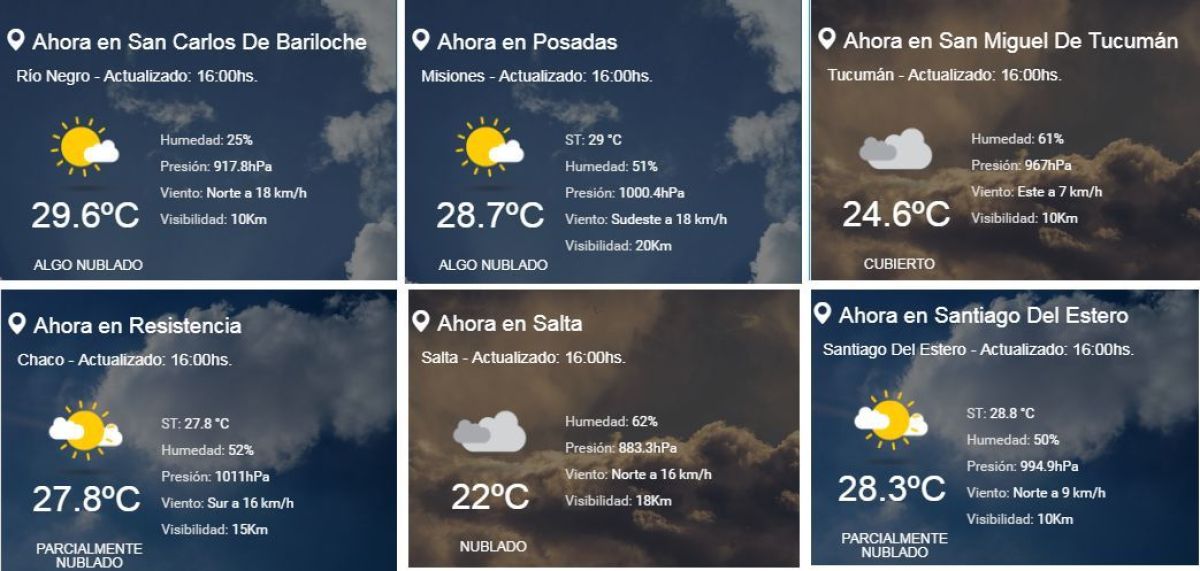 Si se toma como referencia las 16 horas de este lunes (4/2), en nuestra ciudad hacía 29,6º, mientras que en Posadas (Misiones) 28,7º. La misma situación sucede con San Miguel de Tucumán, donde la temperatura en ese mismo horario era de 24,6º; en Resistencia (Chaco) de 27,8; en Salta de 22º; o en Santiago del Estero, de 28,3º