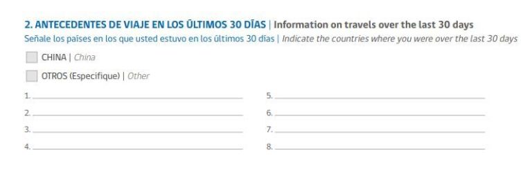 El formulario pregunta, además de los datos personales, antecedentes de viaje en los últimos 30 días, si el visitante tuvo contacto con una persona enferma de coronavirus (covid-19) y si en su estadía en el extranjero en los últimos 30 días estuvo enfermo.