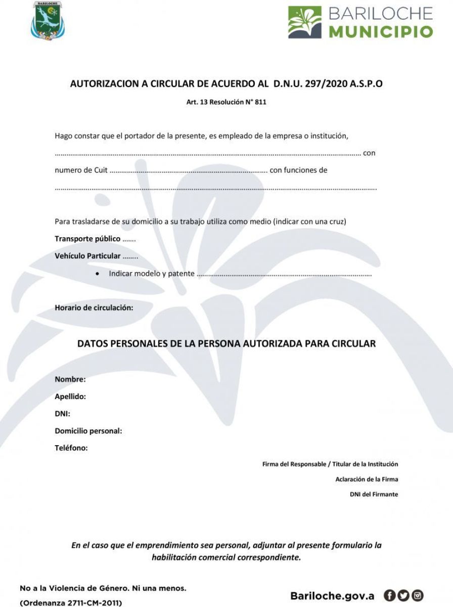 Desde el día de mañana (sábado), el formulario va a estar disponible para descargar en bariloche.gov.ar.