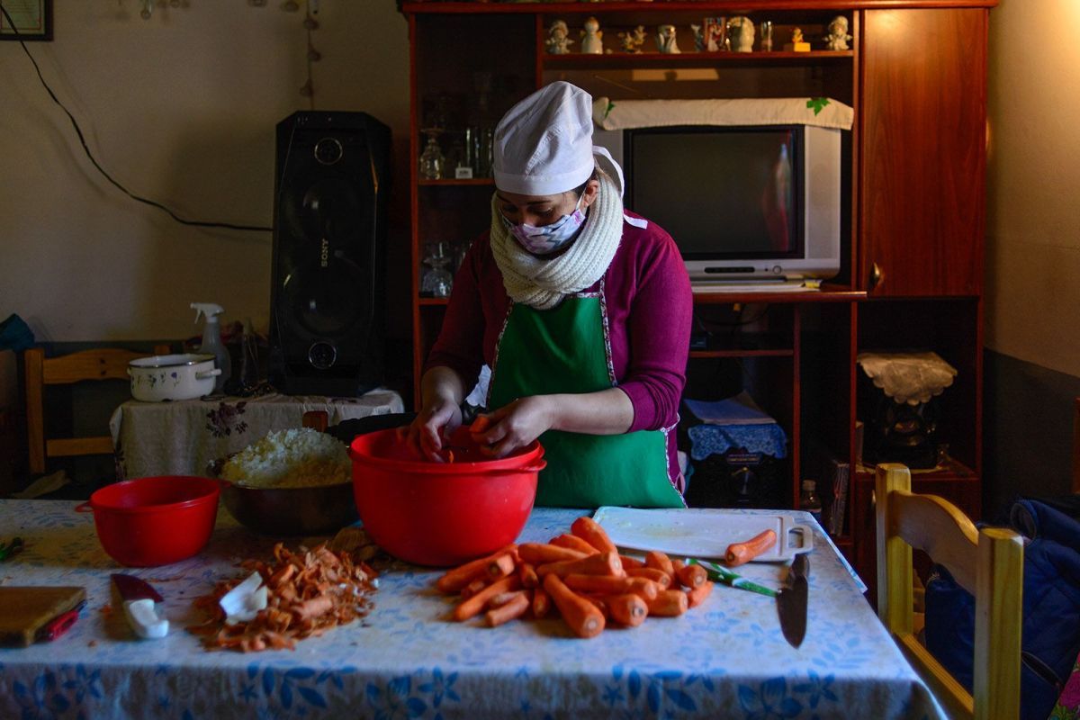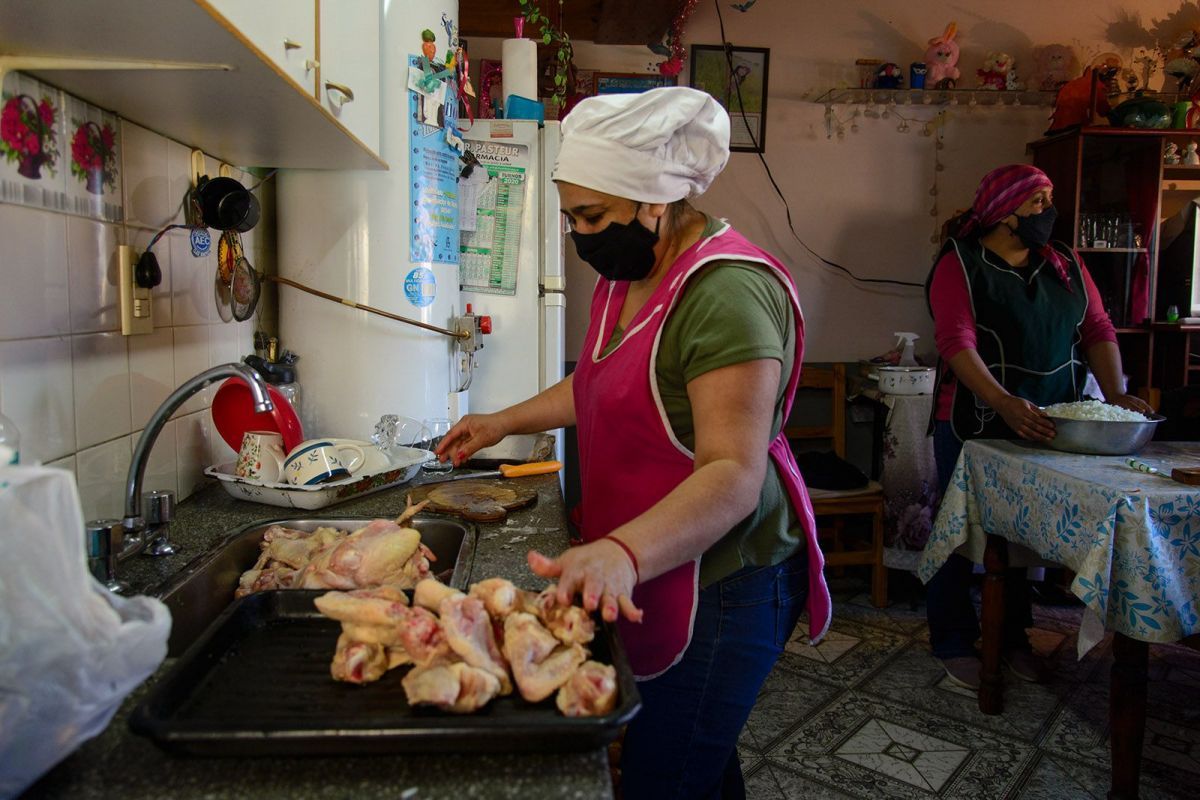 Mientras, en el comedor, las mujeres pican cebolla, cortan zanahorias y trozan las alas de pollo que les donaron. Lamentablemente, a veces no pueden entregar la comida por falta de donaciones sumado a que la demanda aumenta cada vez más.