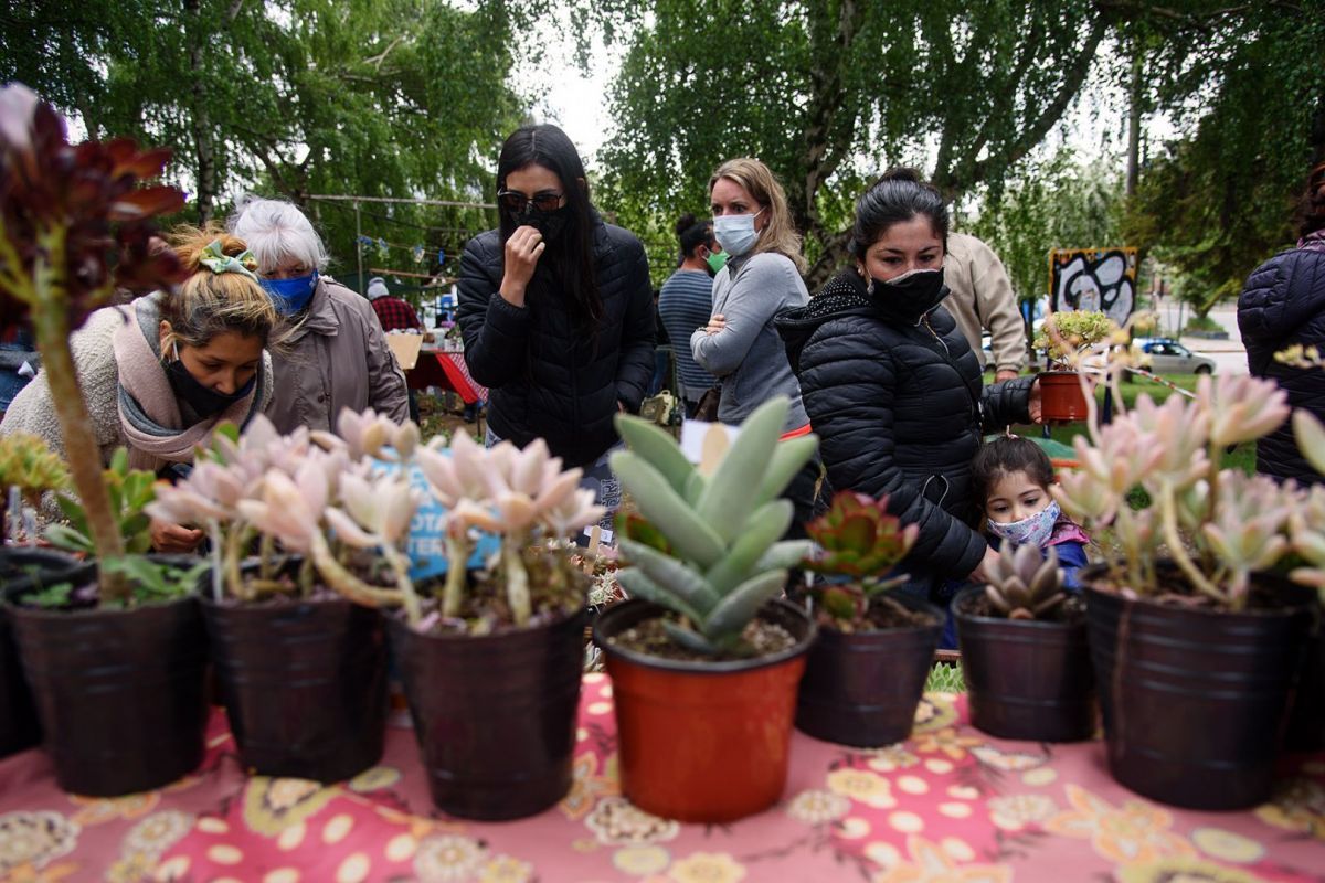 A pesar de la mañana gris, a las 11 de la mañana ya había gente esperando en la fila para ingresar a la Feria Franca de Horticultores, que hace más de una década congrega a productores no solo de Bariloche, sino de toda la región, en la plaza Belgrano.
