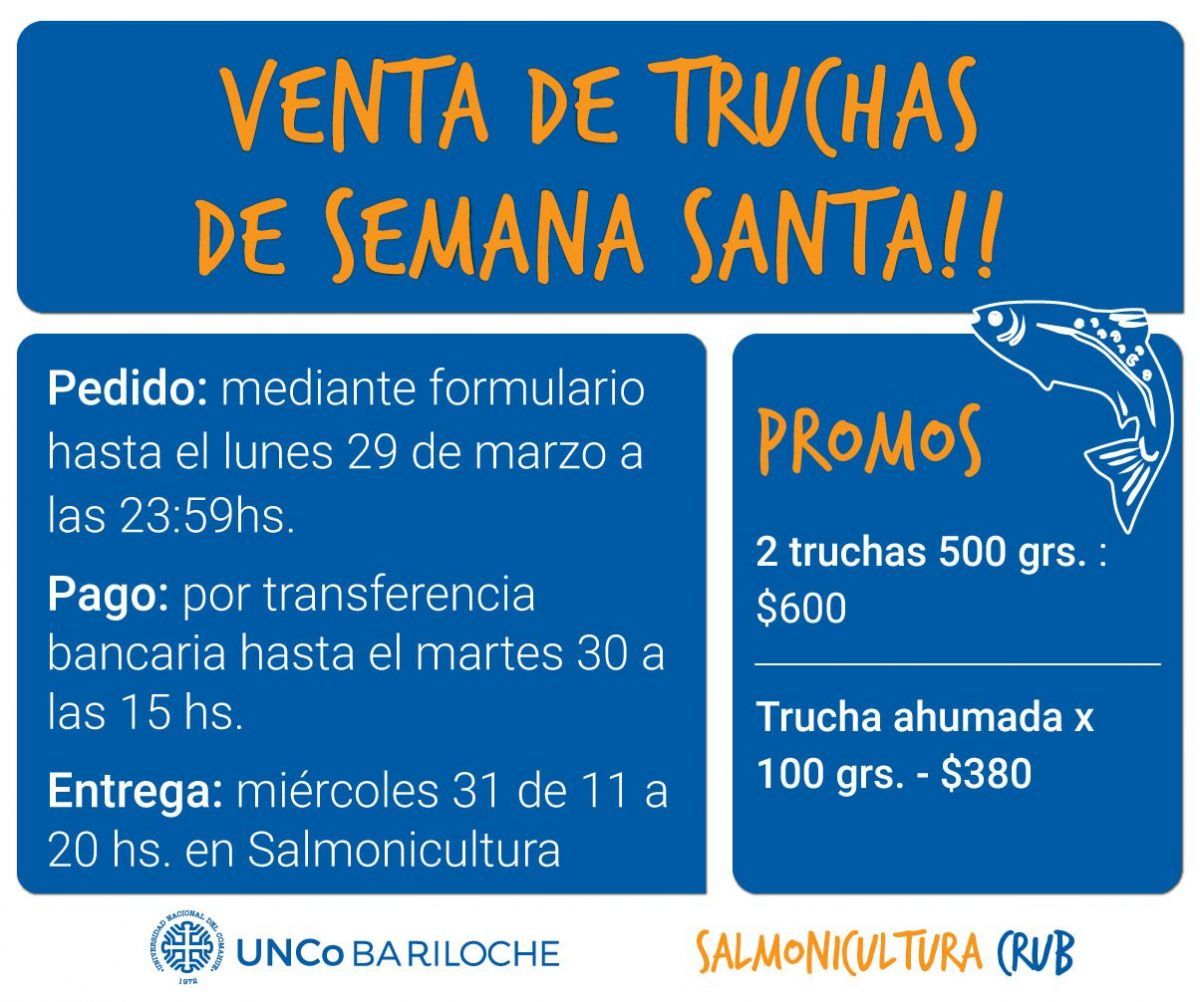 La entrega será el miércoles 31 de marzo entre las 11 y las 20 hs. en el kiosko del Centro de Salmonicultura.