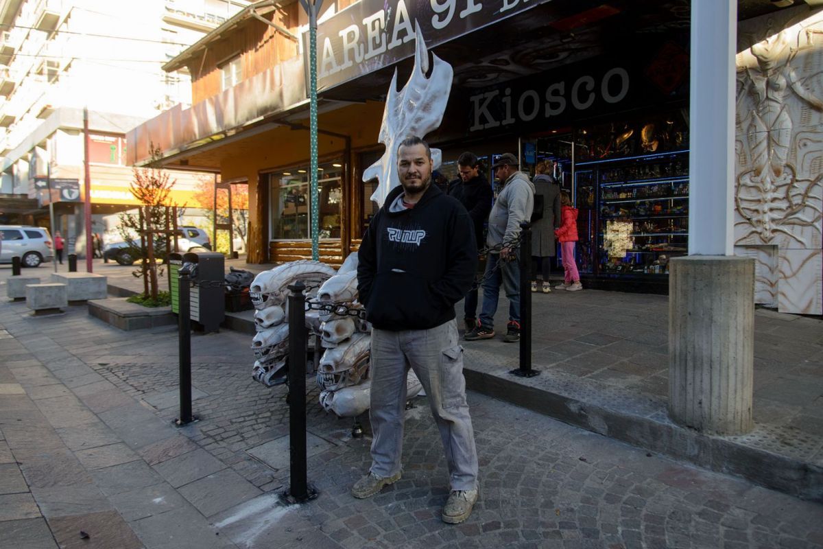 Cristian Espinillo lo hizo de nuevo. El escultor que hace unos años creó el alien gigante que supo estar en la primera cuadra de Mitre, ahora construyó una nueva obra gigante que se levanta en el mismo lugar del centro barilochense.