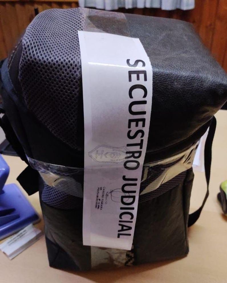 En el lugar fue identificado un individuo de 25 años quien en su poder tenía un bolso de viaje con prendas de vestir, una caja de herramientas y un bolso matero con la inscripción Jabalíes Rugby Club.