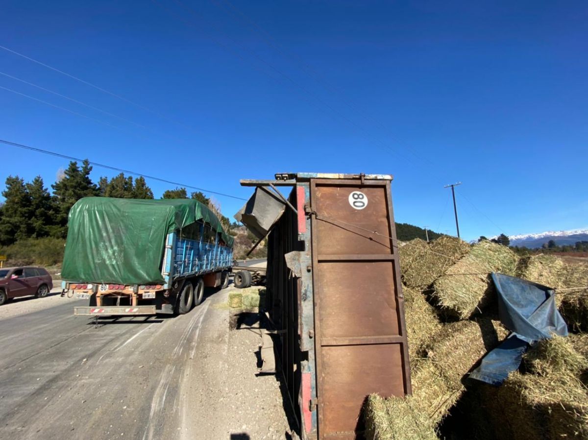 Un camión que transitaba hacia Bariloche cargado con fardos de pasto, tuvo un desperfecto y perdió toda la carga.