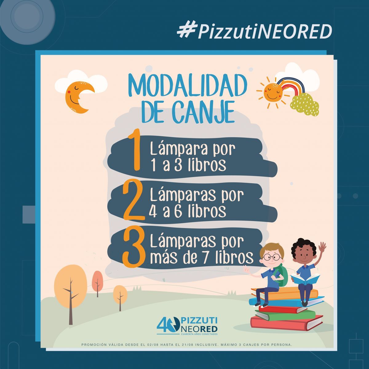 Quienes quieran llevar los libros, hay tiempo hasta el 21 de agosto. Y para más información, se pueden realizar consultas a través de las redes sociales de Pizzuti. (ANB)