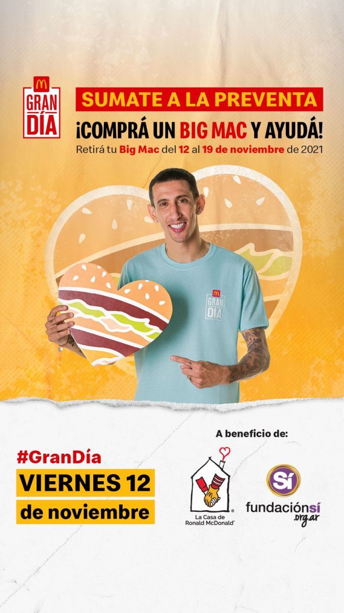 Ángel Di María, el mediocampista de la Selección Argentina, se sumó este año como “anfitrión” de la campaña para concientizar sobre la importancia de colaborar con la causa detrás del GRAN DÍA. Con su gran espíritu solidario el jugador quiso ser parte de este día tan importante ara ayuda a ambas instituciones y, por tal motivo, formó parte de toda la campaña de comunicación de este 2021.