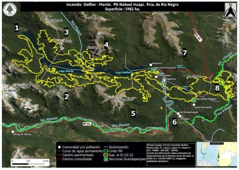 Desde la administración de Parques Nacionales señalaron que desde el día siguiente se desplegaron equipos de primera respuesta al lugar, pero las condiciones meteorológicas, geográficas y de material combustible hizo que el incendio se propagara rápidamente los días siguientes, alcanzando 6 mil hectáreas en lago Steffen, Cañadón de la Mosca y la zona de El Manso y Villegas.