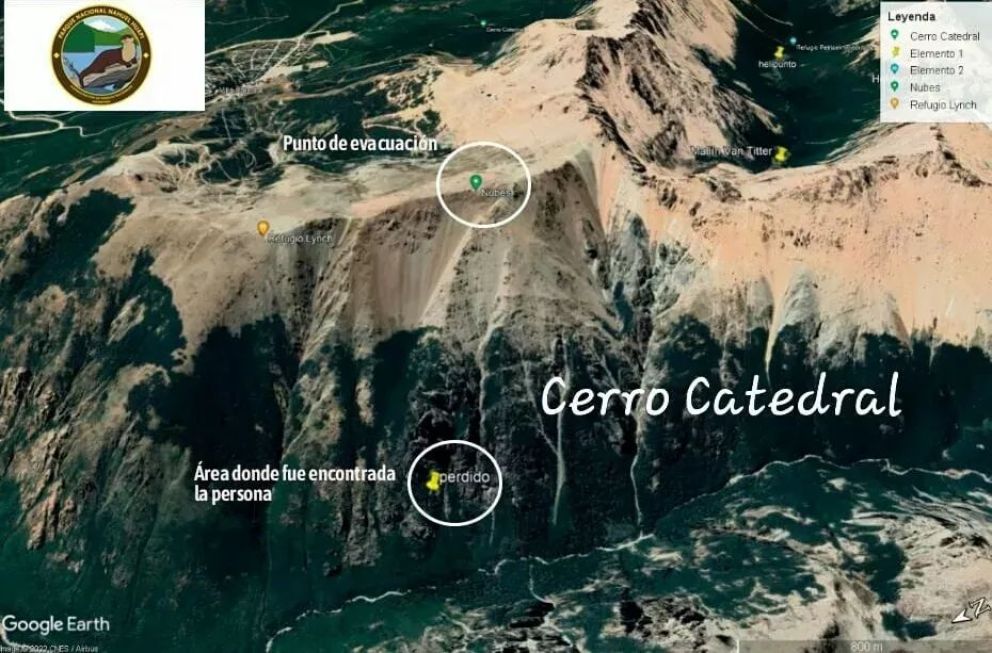 Su estado de salud general es bueno y sin lesiones. El operativo general incluyó 12 brigadistas y personal de logística del Departamento de Incendios, Comunicaciones y Emergencia y del Parque Nacional junto al guardaparque de la Seccional Gutiérrez, 5 agentes de Gendarmería Nacional, 10 agentes de la Comisión de Auxilio, 3 personas del Sistema Nacional de Manejo del Fuego para operar el helicóptero, 2 camionetas Ranger, un semirrígido del Parque Nacional, dos binomios de perros de búsqueda de personas y 3 vehículos con personal de Catedral Alta Patagonia que colaboraron con todo el procedimiento.