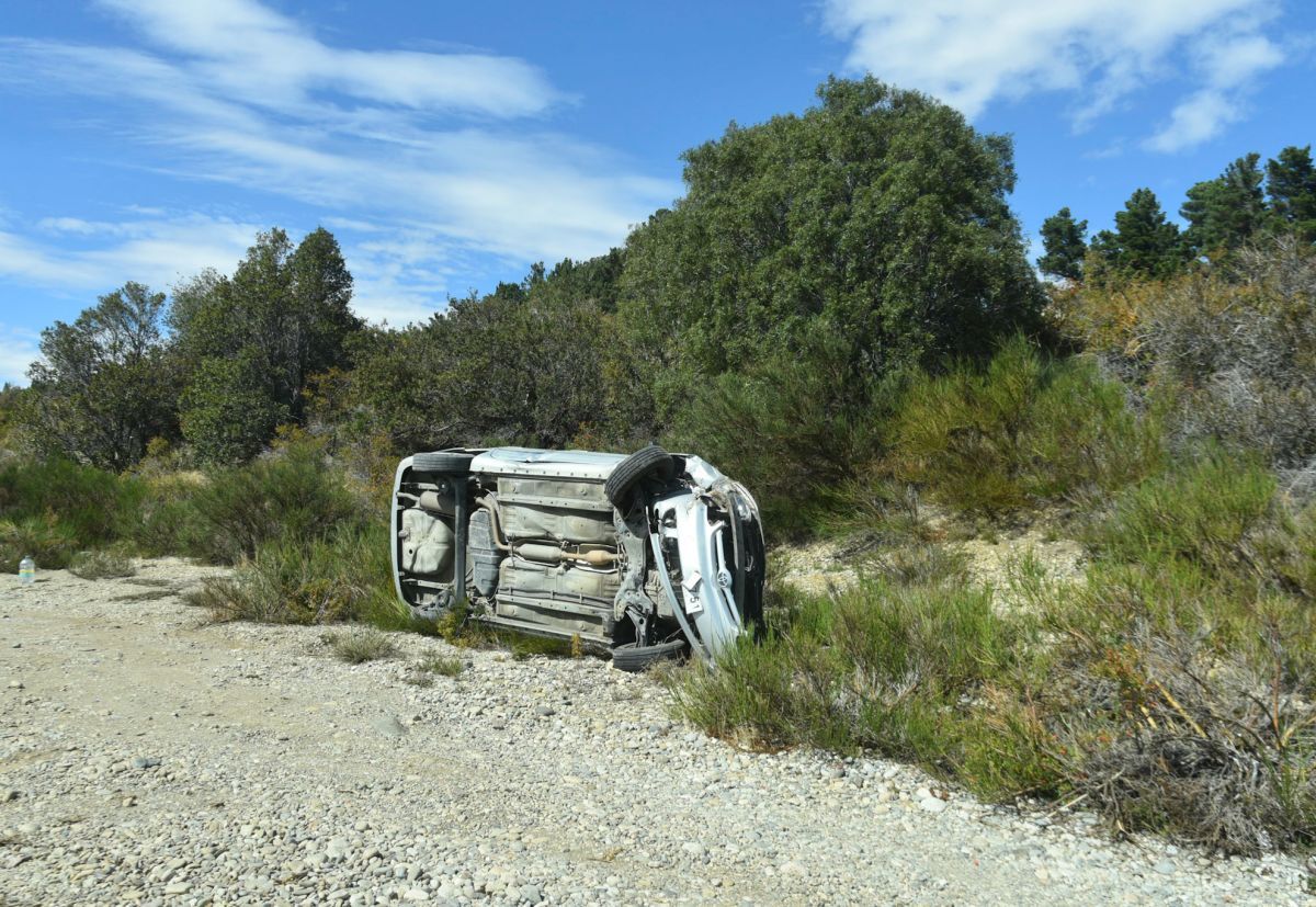 La pareja se trasladaba en dirección Dina Huapi Bariloche cuando sufrieron el vuelco que los tiró para el lado del lago.