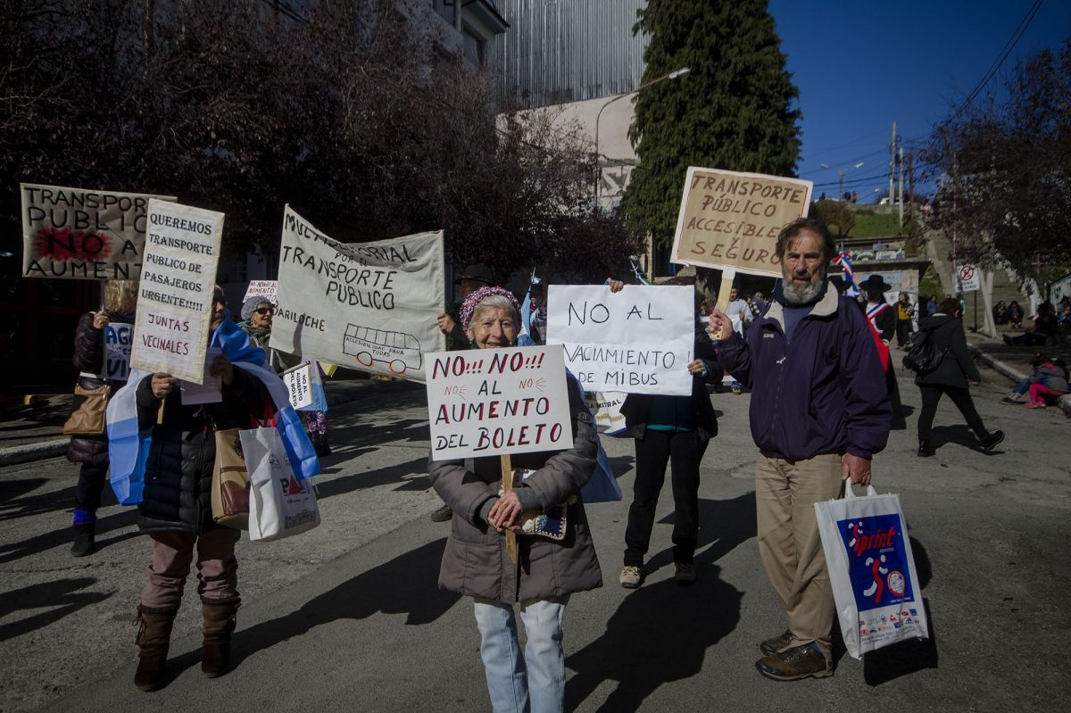 En el desfile, además de saludos por el aniversario de la ciudad, hubo algunos reclamos, especialmente dirigidos al servicio de transporte público de pasajeros. Tanto de centros de jubilados como los integrantes de la Asamblea Popular Bariloche, que convocó a vecinos con distintos pedidos, hicieron hincapié en la necesidad de contar con un servicio eficiente.