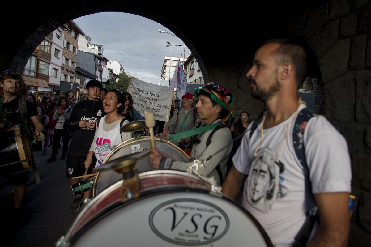 La concentración estuvo dividida en dos, ya que un grupo se reunió en la Ruca Mapuche, donde se encuentran detenidas las mujeres que habitaban en la comunidad mapuche de Villa Mascardi, mientras que otra cantidad de gente partió desde Onelli y Brown.