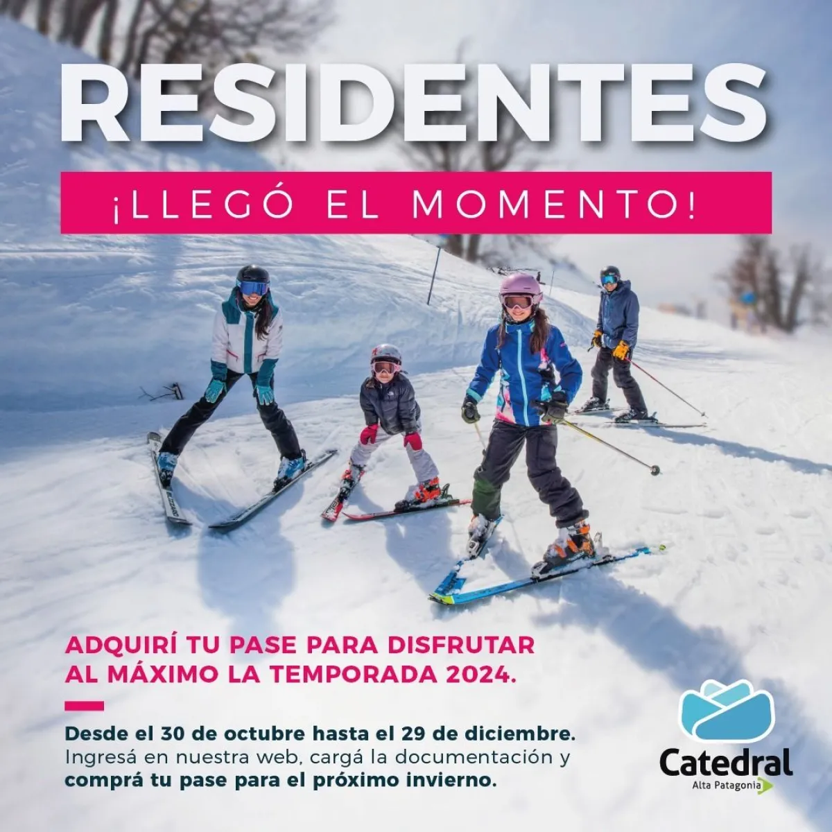 A partir del próximo lunes 30 de octubre, los entusiastas de los deportes de invierno podrán asegurarse su Pase Residente 2024 en Catedral Alta Patagonia. La venta estará abierta hasta el 29 de diciembre de 2023, ofreciendo a los amantes de la nieve una oportunidad única para prepararse para la temporada de esquí y snowboard.