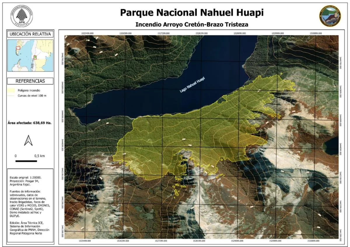 El incendio que comenzó el 5 de febrero pasado dentro del Parque Nacional Nahuel Huapi arrasó con más de 638 hectáreas de bosque nativo.