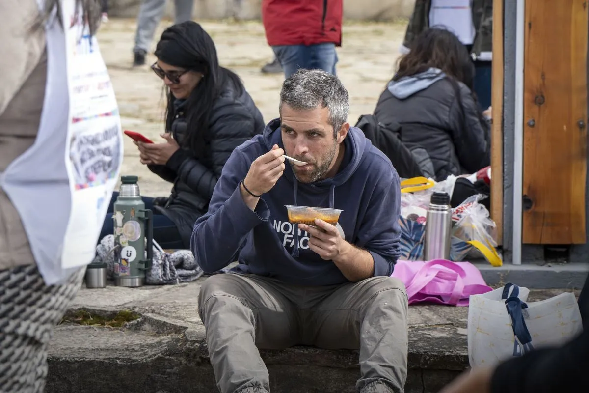 Los trabajadores de la Educación realizaron una olla popular en el Ñireco. Foto: Marcelo Martínez.