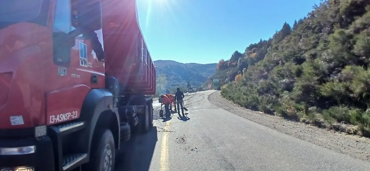 Vialidad Nacional informa que desde este jueves agentes del 20° Distrito Río Negro trabajan en el bacheo en caliente de la Ruta Nacional N°40, entre Bariloche y El Bolsón, precisamente en la zona del Río Villegas, El Foyel y el Cañadón de la Mosca.