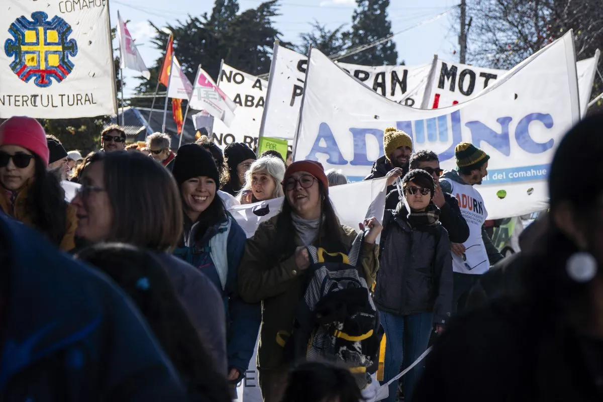 En Bariloche, tal como estaba previsto, la concentración comenzó en el Centro Cívico a partir de las 13 y luego recorrió las calles de la ciudad hasta llegar al Centro Universitario Regional Bariloche de la Universidad del Comahue. Allí, en estos momentos, se lleva adelante una asamblea interclaustro, donde ser definirán los pasos a seguir en la lucha.