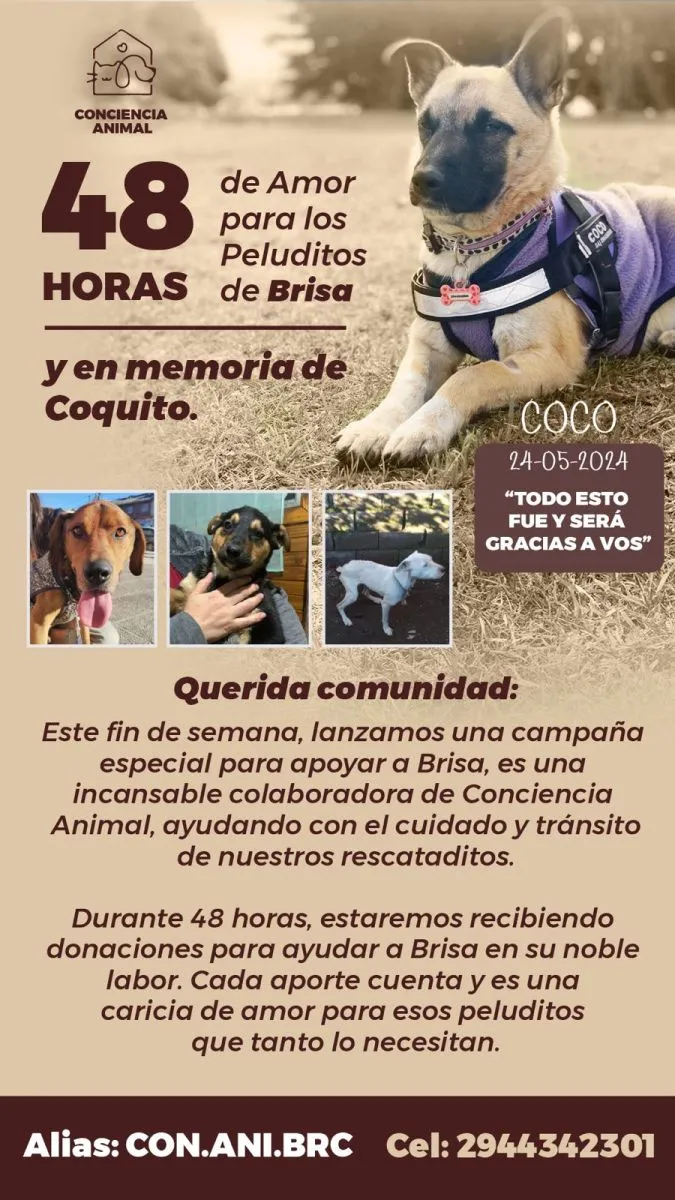 Las personas que quieran y puedan colaborar, pueden hacerlo a través de una transferencia al alias con.ani.brc o contactándose a los celulares +54 294 4342301 (Brisa) o +54 294 4586798 (Silvina). (ANB)