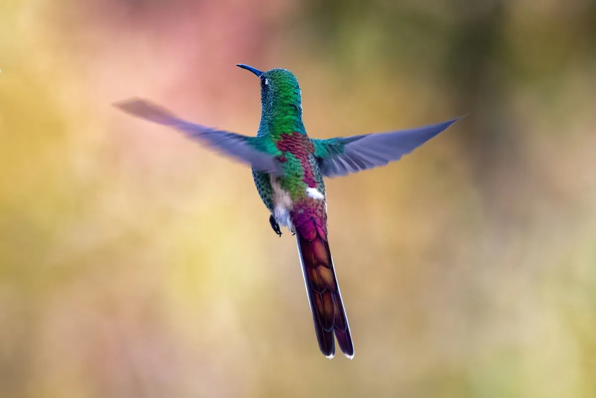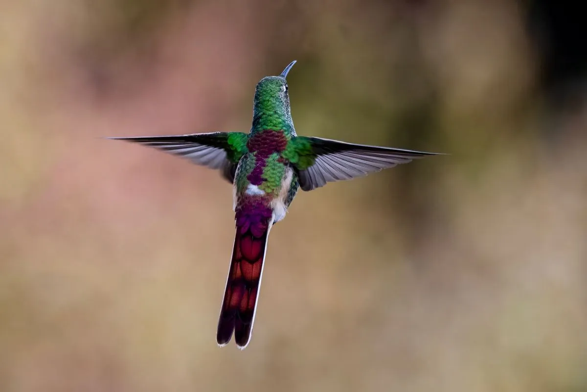 El picaflor Cometa se distingue por una cola mucho más larga que el picaflor rubí. Foto: Mariano Diez Peña.