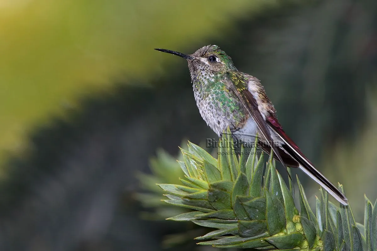 El pequeño ave fue visto en un domicilio del este, aunque es propia de los Andes. Una hermosa cola la distingue del picaflor rubí que comúnmente habita esta zona.