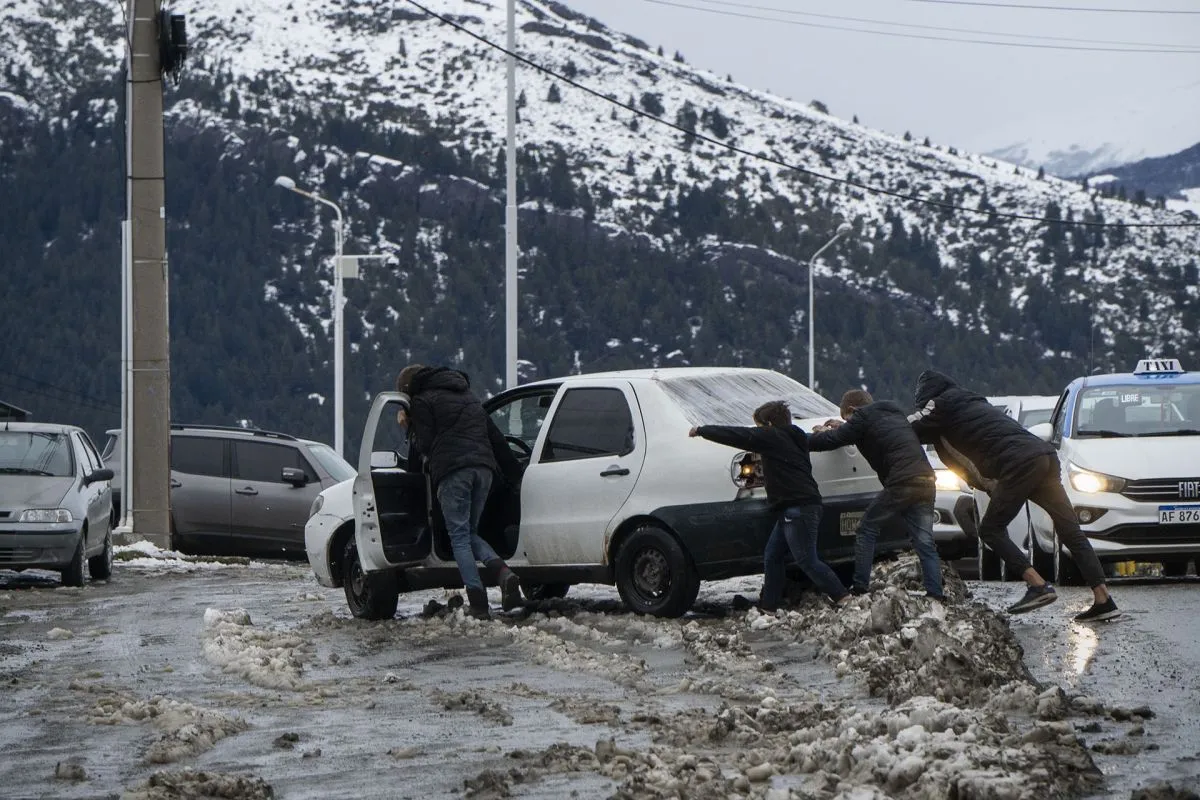 En la zona sur de la ciudad, nevó copiosamente durante la noche y se acumularon varios centímetros, contario a otros sectores de Bariloche donde las precipitaciones fueron mayormente en forma de lluvia.