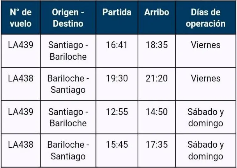 Viajar entre Bariloche y Chile con mayor frecuencia será una posibilidad que se ofrecerá durante la temporada estival, con la ruta aérea que operará LATAM entre Santiago y Bariloche.