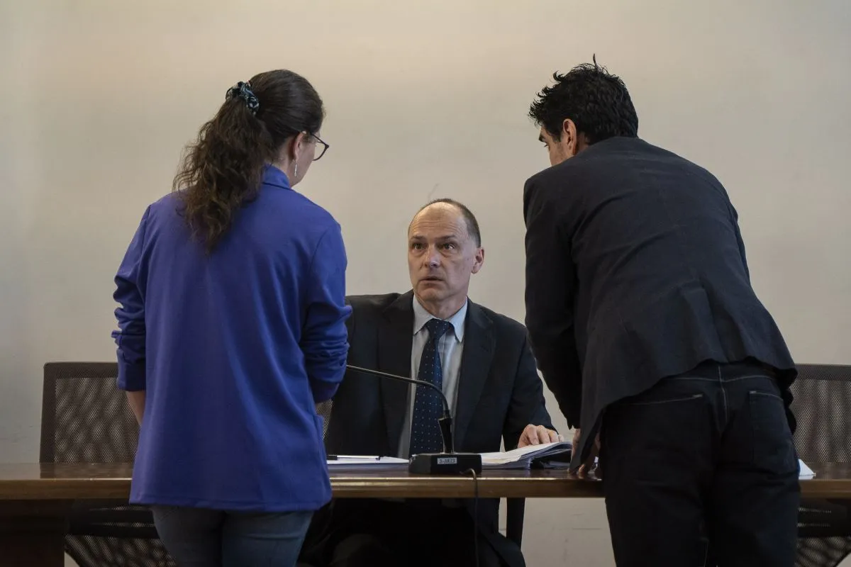La abogada Natalia Araya, el juez Juan Pablo Laurence y el fiscal Tomás Soto. Foto: Marcelo Martínez.