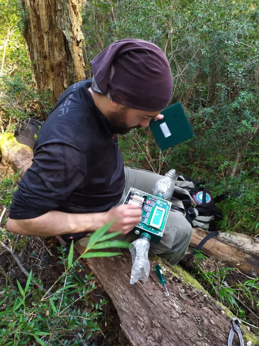 Configurando una de las Grabadoras Digitales Automatizadas. Foto: gentileza Maximiliano Rocchi.