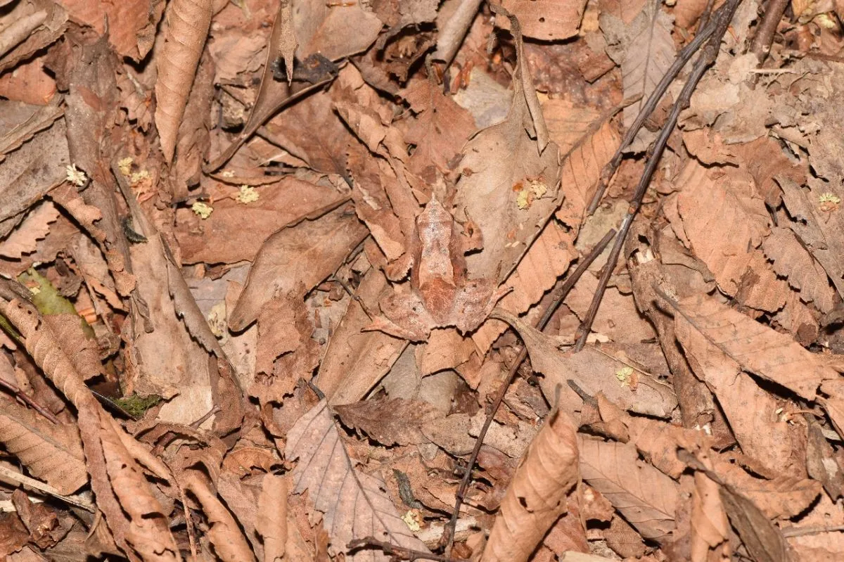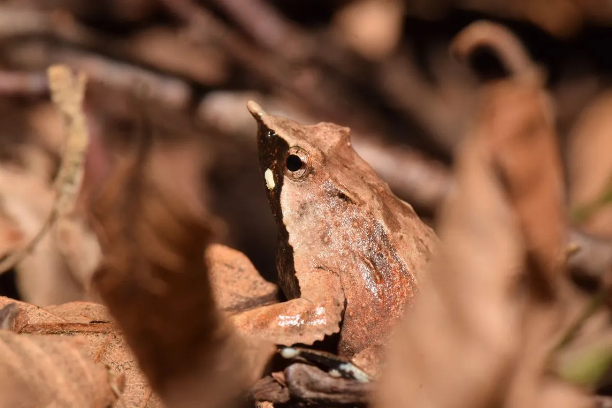 La Ranita de Darwin se camufla con el entorno. Foto: gentileza Maximiliano Rocchi.