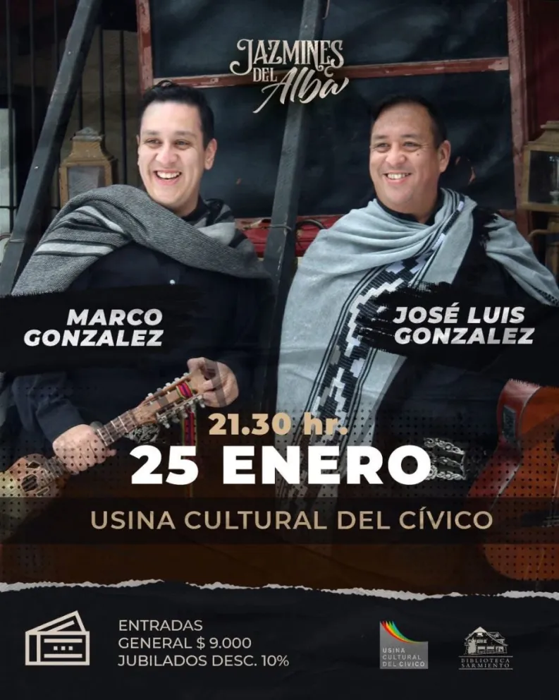 Jazmines del Alba es un dúo conformado por los hermanos Marco y José Luis González con una amplia trayectoria en la música folklórica de nuestra ciudad y la región.