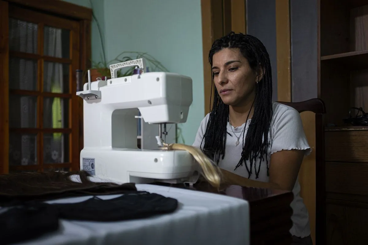Con las donaciones, se realizan cortinas de cabello. Foto: Marcelo Martínez.