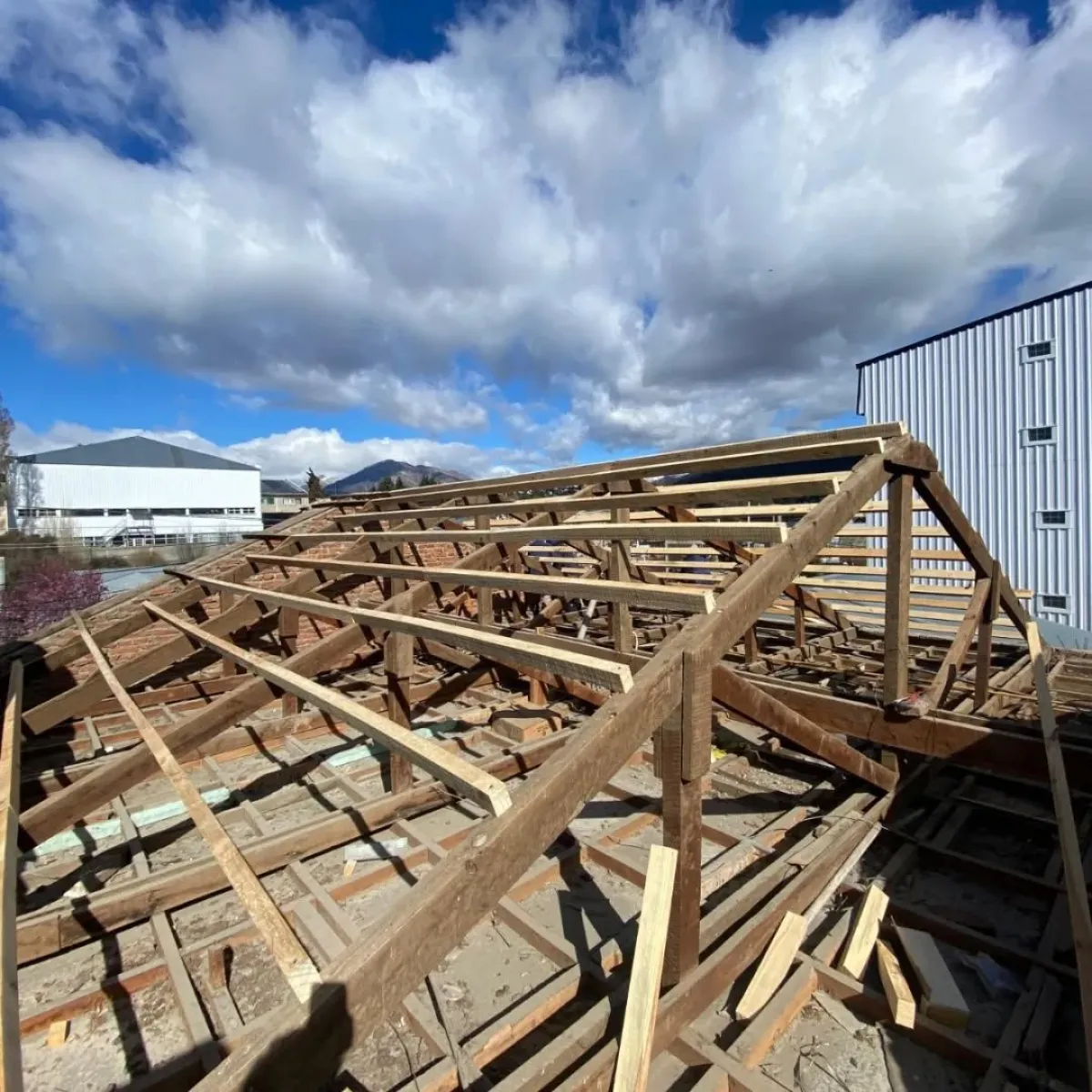 Desde el Consejo Escolar explicaron que, tras la remoción de las partes dañadas en los techos del sector afectado, ya se comenzó con el nuevo montaje de estructuras, colocación de tirantes de sustentación y fijación de planchuelas para vinculación con mampostería.