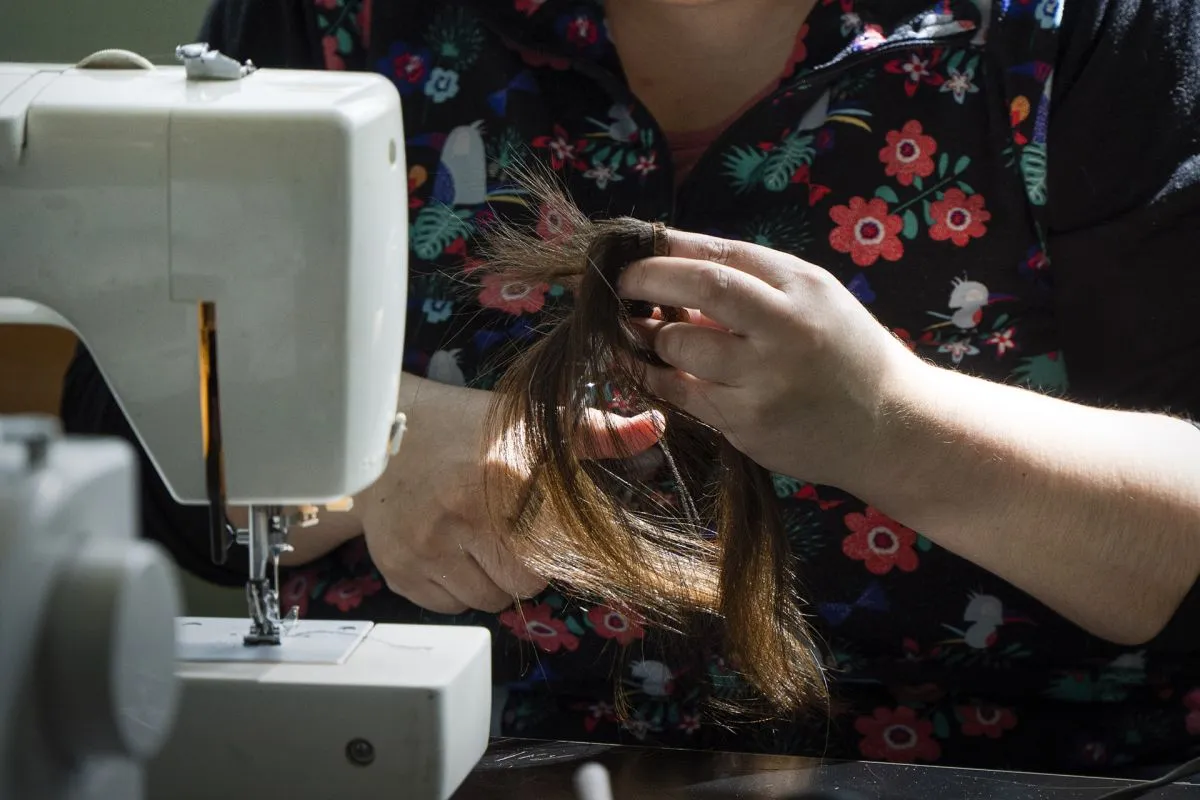 Voluntarias se suman a la tarea de confeccionar pelucas oncológicas