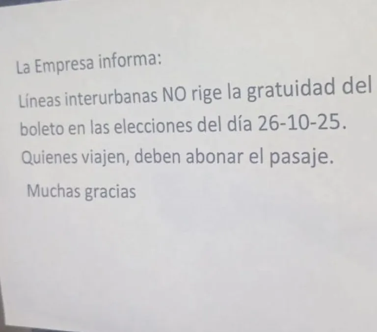 La decisión de la firma fue notificada a través de carteles en sus unidades, para dar aviso a los pasajeros de que mañana tendrán que abonar el pasaje normalmente.