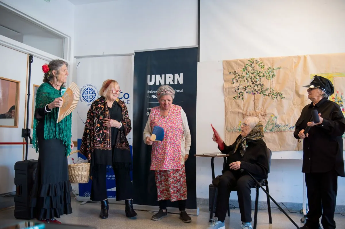 La celebración incluyó una presentación de tango a cargo de la pareja de bailarines del taller comunitario Tango Salón, guiados por Alberto “Bocha” Zottele, y una intervención del taller de teatro “Jugar para actuar. Actuar para jugar” de UPAMI UNRN. Con humor, sensibilidad y creatividad, el grupo presentó una obra de improvisación inspirada en la vida de un conventillo porteño, mostrando el proceso de crecimiento artístico logrado a lo largo del año.