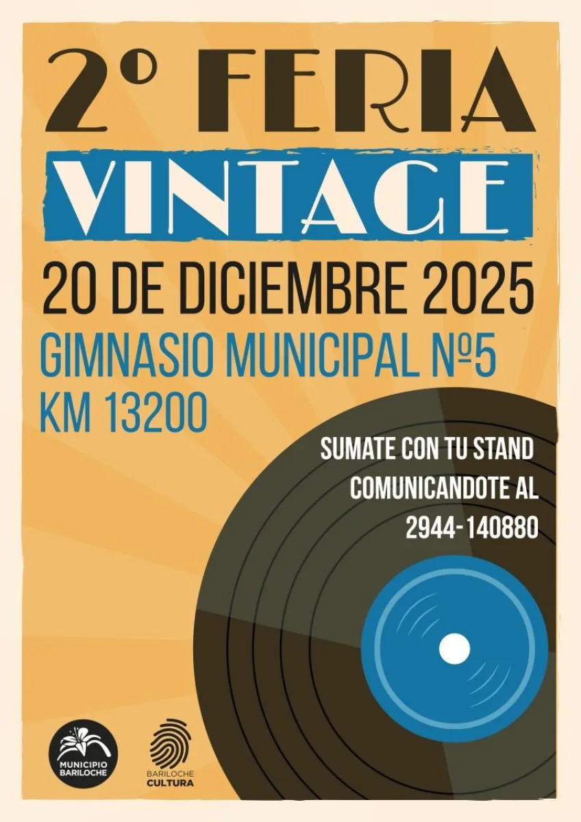 Bariloche se prepara para la segunda edición de la Feria Vintage. La propuesta tendrá lugar el sábado 20 de diciembre, de 16 a 21 hs, en el Gimnasio Municipal Nº 5 “Demetrio ‘Chueco’ Velázquez” del Km 13.