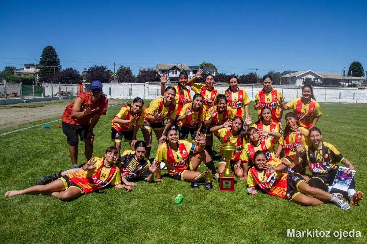 Las chicas dirigidas por Pablo Almonacid lograron su quinto título consecutivo en fútbol campo. Foto: "Markitoz" Ojeda.