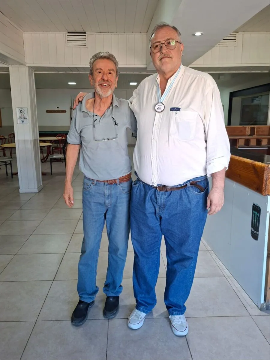 El ganador, Fernando Vázquez (der.), junto al presidente del Club de Ajedrez Bariloche Manuel García (izq.)