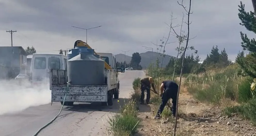 Riego, limpieza y mantenimiento en distintos espacios públicos de la ciudad | ANBariloche