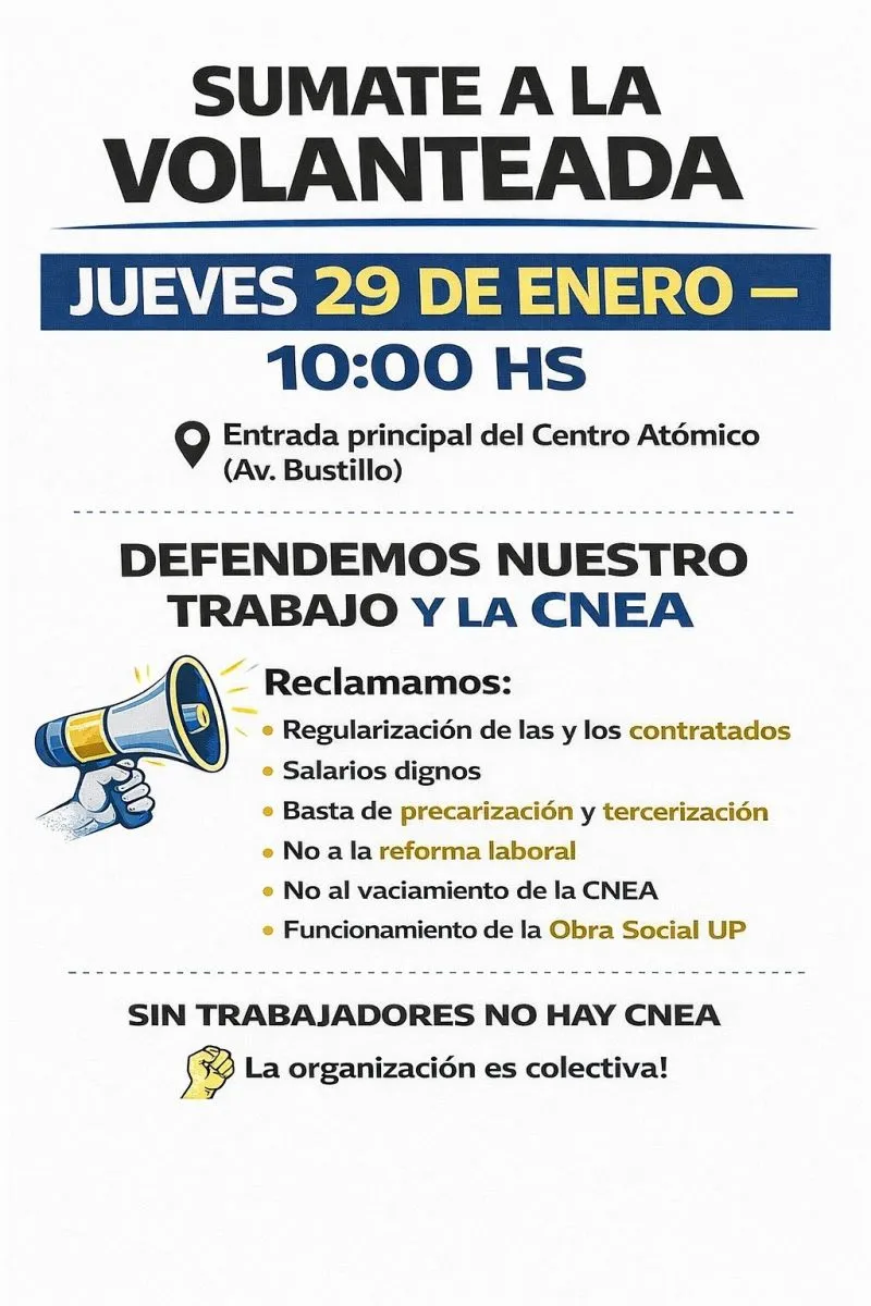 Esta mañana se desarrolló una jornada de protesta en la puerta del Centro Atómico Bariloche. Alrededor de 150 trabajadores se concentraron desde las 10 en el ingreso del complejo científico, ubicado sobre la avenida Bustillo 9500, para informar a la comunidad sobre la crisis que atraviesa la Comisión Nacional de Energía Atómica y el sistema científico-tecnológico nacional.