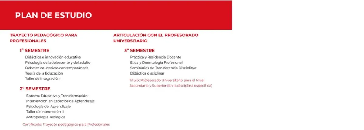 Como novedad para este ciclo lectivo, la universidad incorpora el Trayecto Pedagógico para Profesionales en articulación con el Profesorado Universitario para el Nivel Secundario y Superior con inicio de clases en el mes de Marzo.