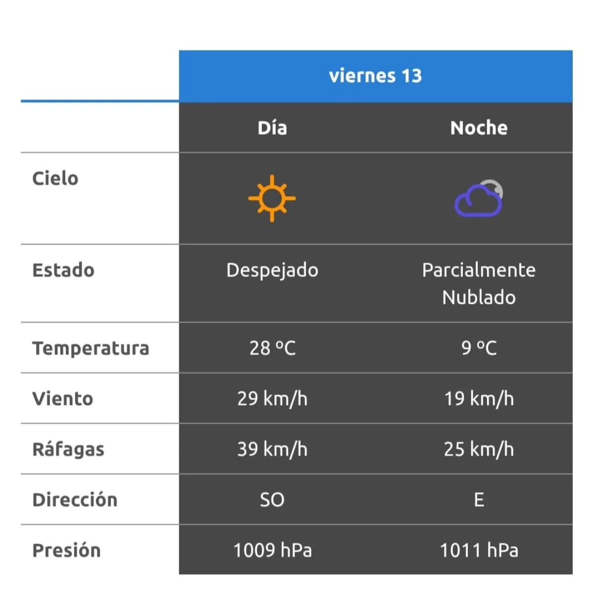 Durante el día, el cielo permanecerá mayormente despejado, lo que favorecerá una tarde cálida en ciudades como Neuquén, Cipolletti, Plottier y el resto del Alto Valle. El viento soplará desde el sudoeste (SO) con velocidades cercanas a los 29 km/h, aunque podrían registrarse ráfagas de hasta 39 km/h, especialmente durante la tarde.