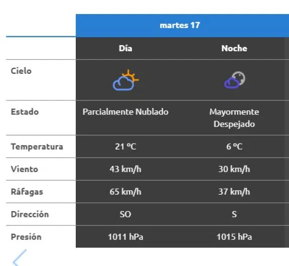 De acuerdo con los pronósticos meteorológicos, durante este martes se prevé cielo mayormente nublado a parcialmente nublado en gran parte de la región. Las temperaturas se mantendrán moderadas, aunque con una sensación térmica más baja debido a la intensidad del viento.
