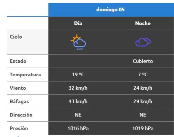 El viento será otro de los protagonistas, con velocidades que oscilarán entre los 29 y 32 kilómetros por hora, con ráfagas que podrían superar los 40 km/h. La dirección predominante será del noreste, lo que contribuirá a mantener la sensación térmica baja durante gran parte del día.