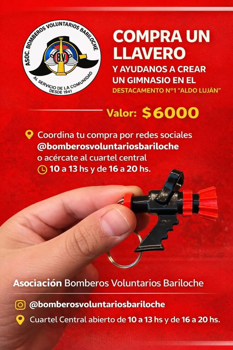 Con este objetivo, iniciaron una campaña solidaria de recaudación de fondos a través de la venta de llaveros, cuyo valor es de $6.000. Quienes deseen colaborar pueden adquirirlos coordinando la compra a través de las redes sociales oficiales del cuartel (@bomberosvoluntariosbariloche) o enviando un mensaje de WhatsApp al 2944680482 .