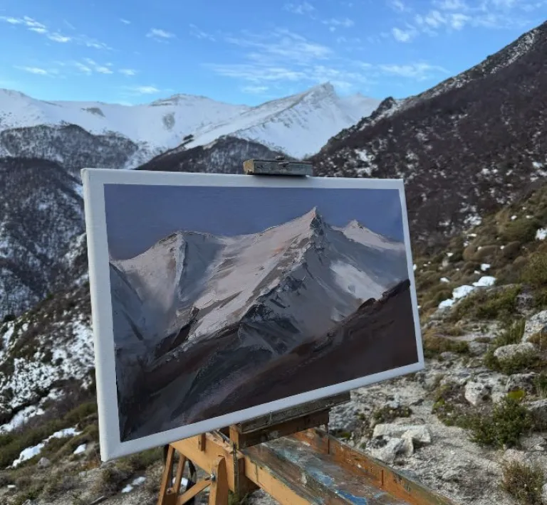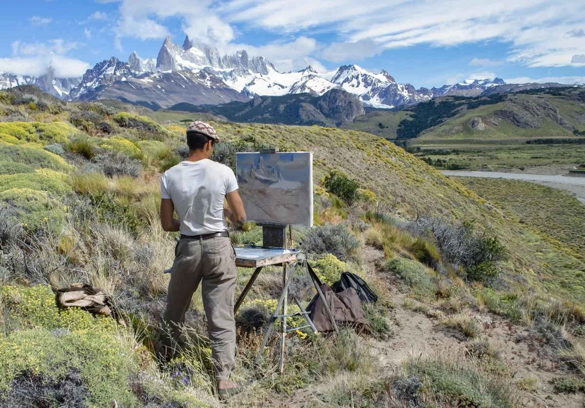 El artista angosturense plasma los paisajes más increíbles. Carga en su mochila todo el equipo y parte a alguna montaña o lugar en el que crear una nueva obra. Cómo fue el camino que lo llevó hasta poder vivir del arte.