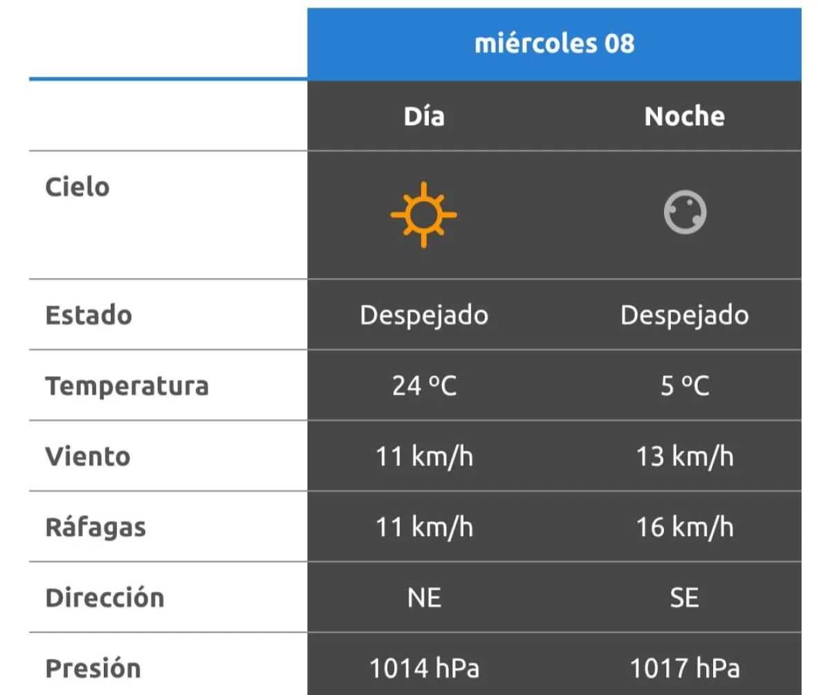 La AIC anticipa una jornada estable, con cielo despejado, temperaturas agradables durante el día y un marcado descenso hacia la noche.