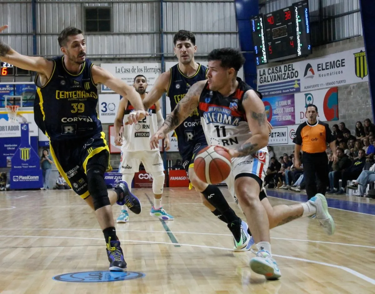 Festejó en Venado Tuerto y sigue en carrera. En la noche del jueves, en suelo santafecino, Deportivo Viedma superó 79-71 a Centenario y se llevó por 3-1 la serie de Reclasificación, para seguir en carrera en la Liga Argentina de Básquetbol.
